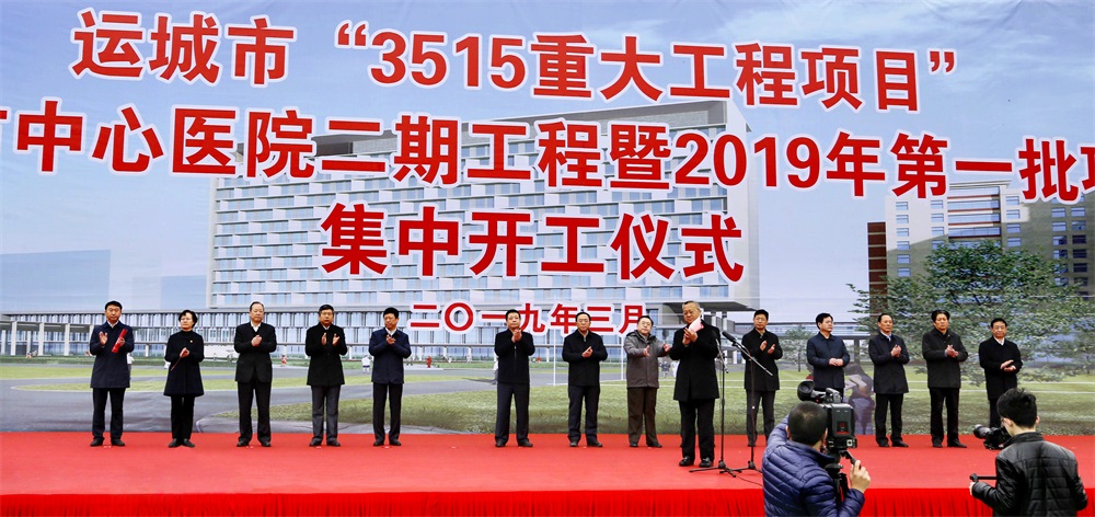 2019年3月2日上午,我公司承建的“運(yùn)城市中心醫(yī)院二期工程”開工儀式隆重舉行。市委書記劉志宏等“四大班子”領(lǐng)導(dǎo),中心醫(yī)院黨委書記、院長高萍,公司總經(jīng)理王哲波,市委市政府相關(guān)部門負(fù)責(zé)人及各縣(市、區(qū))委書記、縣(市、區(qū))長等出席開工儀式。