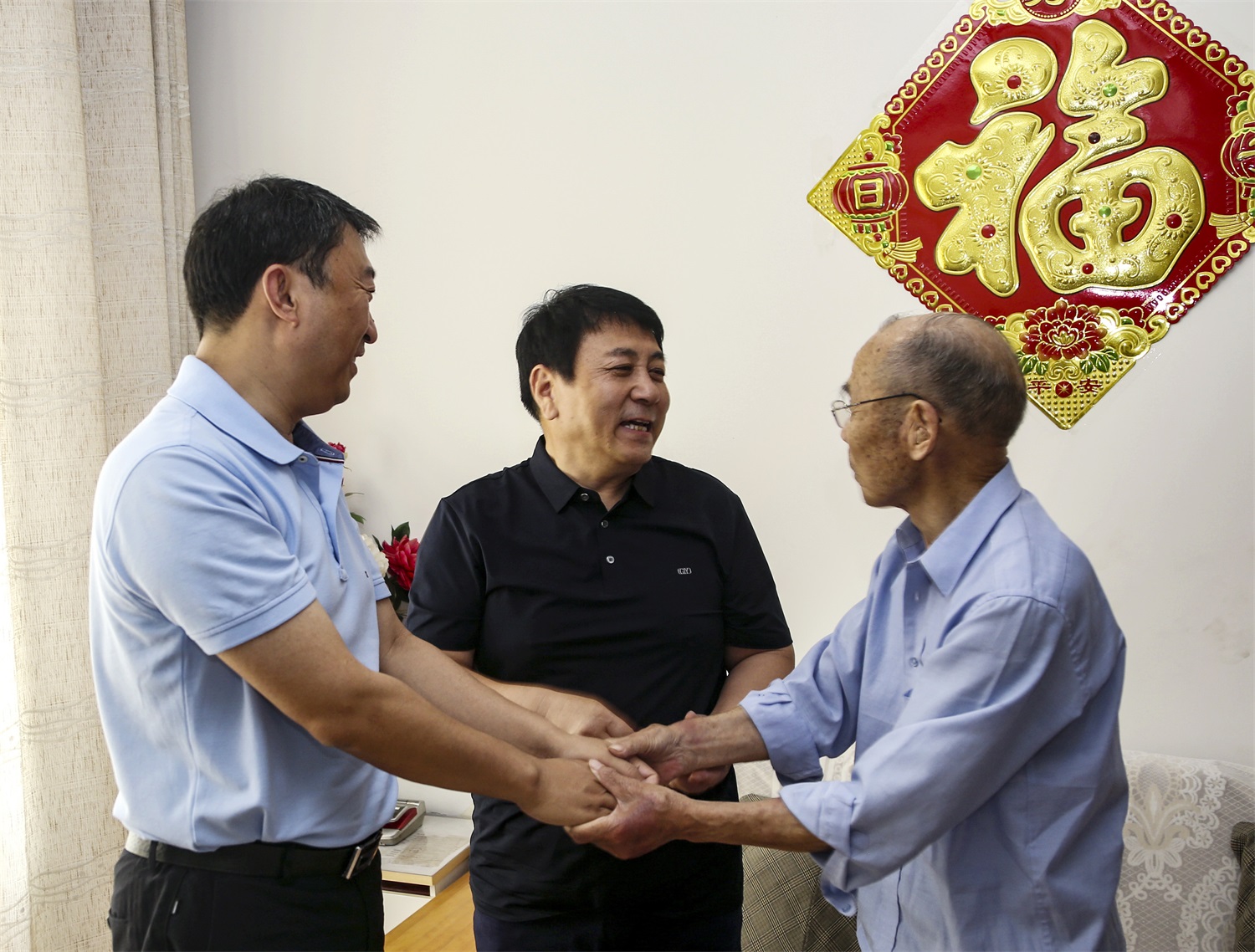 每到一家,牛正澤和王哲波都與他們促膝交談,關(guān)切詢問他們的身體狀況、生活情況和存在的困難,感謝他們?yōu)楣景l(fā)展作出的貢獻(xiàn),并向老同志們介紹近年來公司發(fā)展情況及黨建工作情況。同時(shí),希望他們保重身體,以豐富的經(jīng)驗(yàn)和飽滿的熱情繼續(xù)發(fā)揮余熱,關(guān)注企業(yè)發(fā)展,支持企業(yè)發(fā)展。